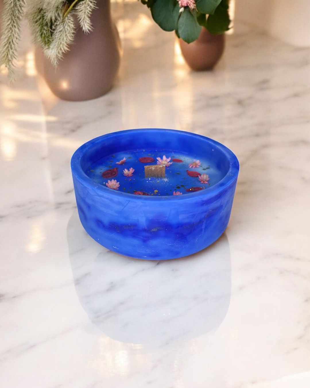 Pour préserver toute la beauté de vos créations artisanales, gardez-les à l’abri des fortes chaleurs (soleil, voiture, radiateur…). Il peut arriver qu’un léger suintement apparaisse : rassurez-vous, cela n’altère ni la combustion ni la délicatesse du parfum, seulement l’esthétique.